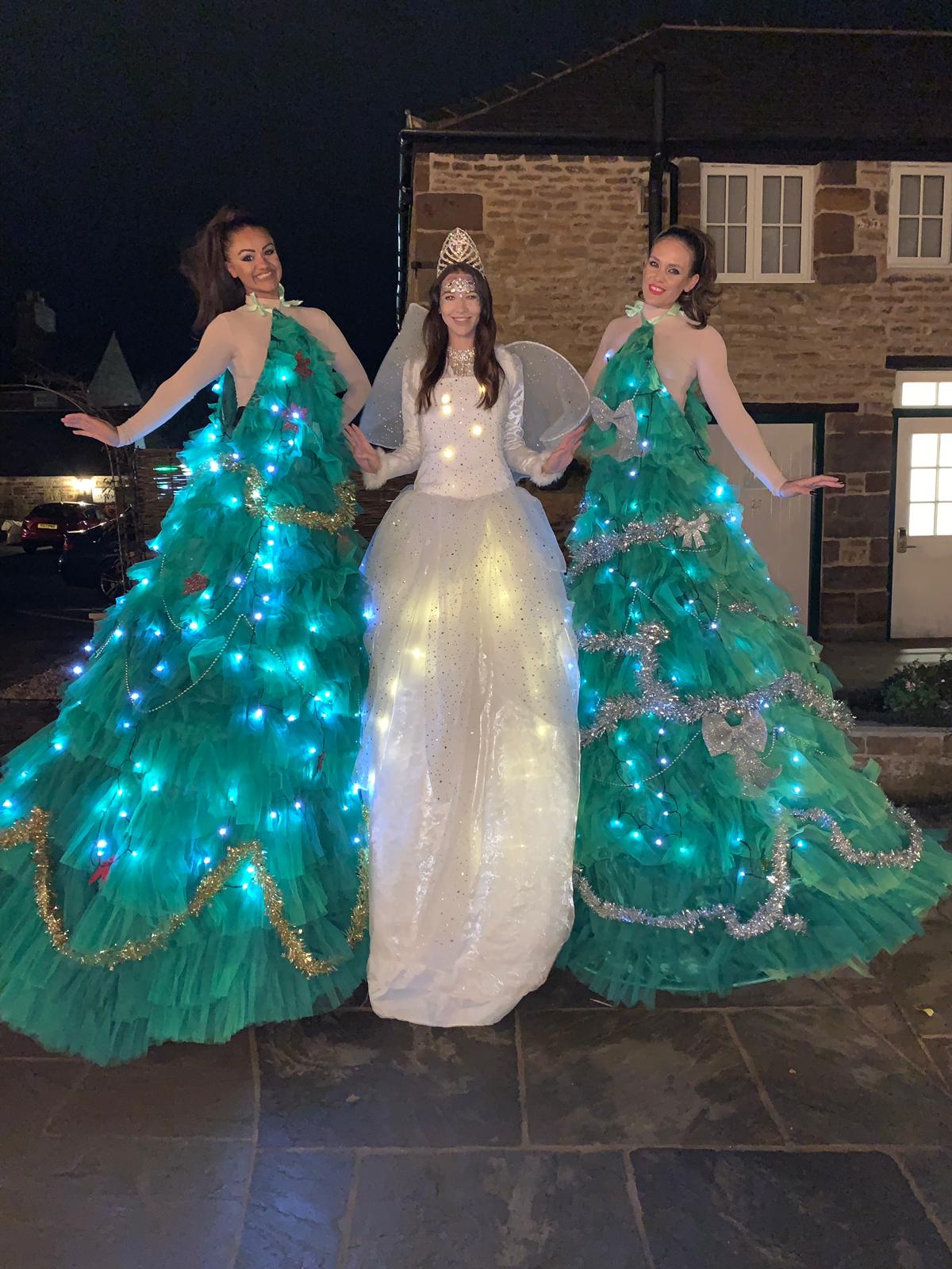 Our stilt-walking entertainers included two decorated Christmas Trees, Mr & Mrs Claus and a Snow Queen. We also provided two Frozen Princesses, which were a big hit with the children, and a fire performer, who put on an amazing performance.